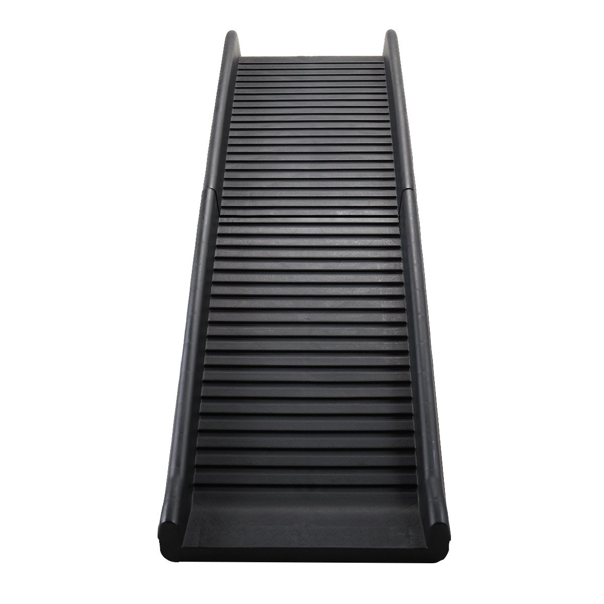 [Folding for Easy Carry]: Weighed only 13 lbs; the sturdy ramp with paw pattern can be easily folded for easy transport and storage. The 2 side buckles prevent sudden opening for security.