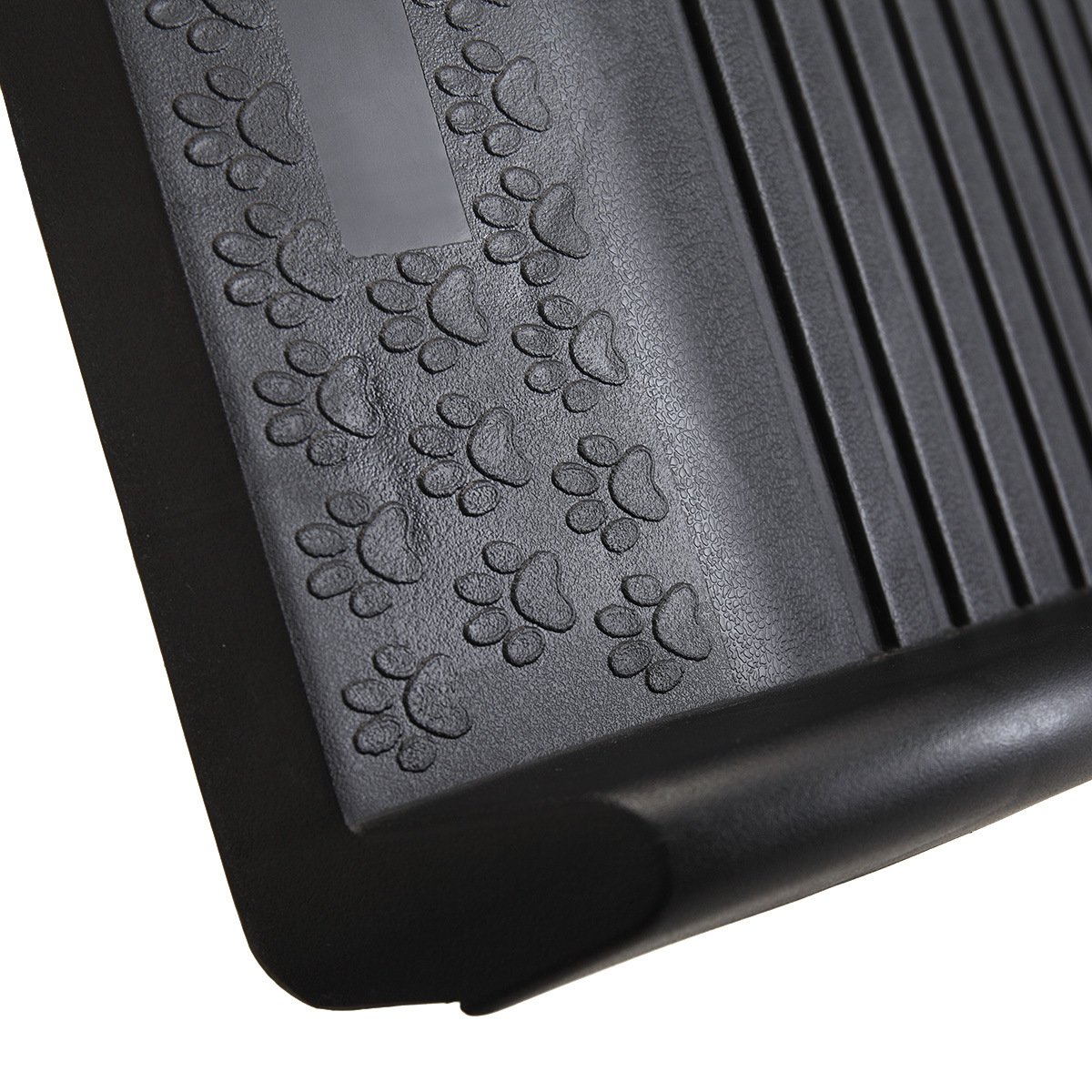 [Safe and Nonslip Surfaces]: Stand stably with the 4 rubber feet. The ramp with high-traction nonslip surfaces allows dogs and cats to confidently walk up and down without slipping.