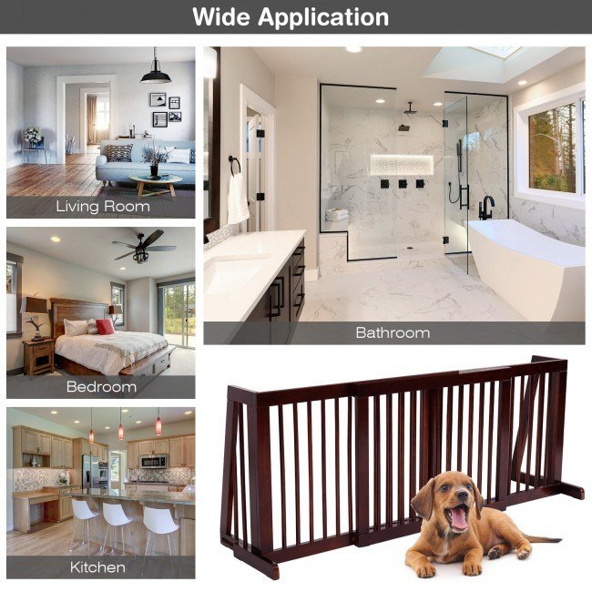 Constructed of wood and durable frame; the pet gate ensures a reliable use keeping your pets in one spot.