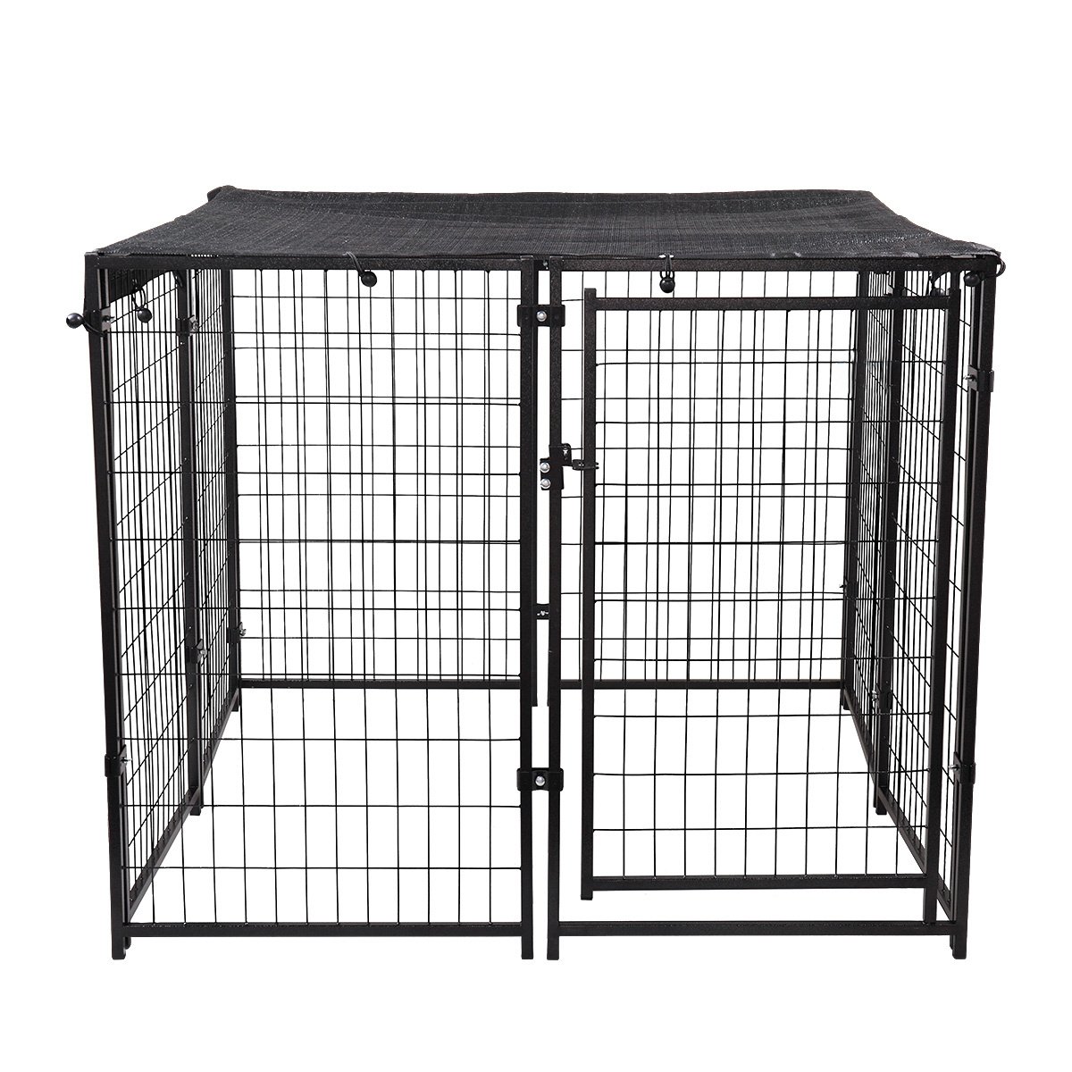 [Heavy-Duty Construction]: Made of heavy-dutyiron pipes with powder coated finish, the dog cage is rust and weather resistant. The high tensile-strength wire mesh will not be destroyed.