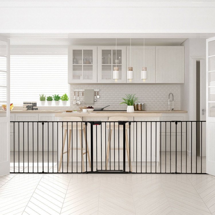 This 5-panel metal fence can be used as a playpen for your toddlers or pets; a baby gate between rooms; or a safety barrier to section off areas.