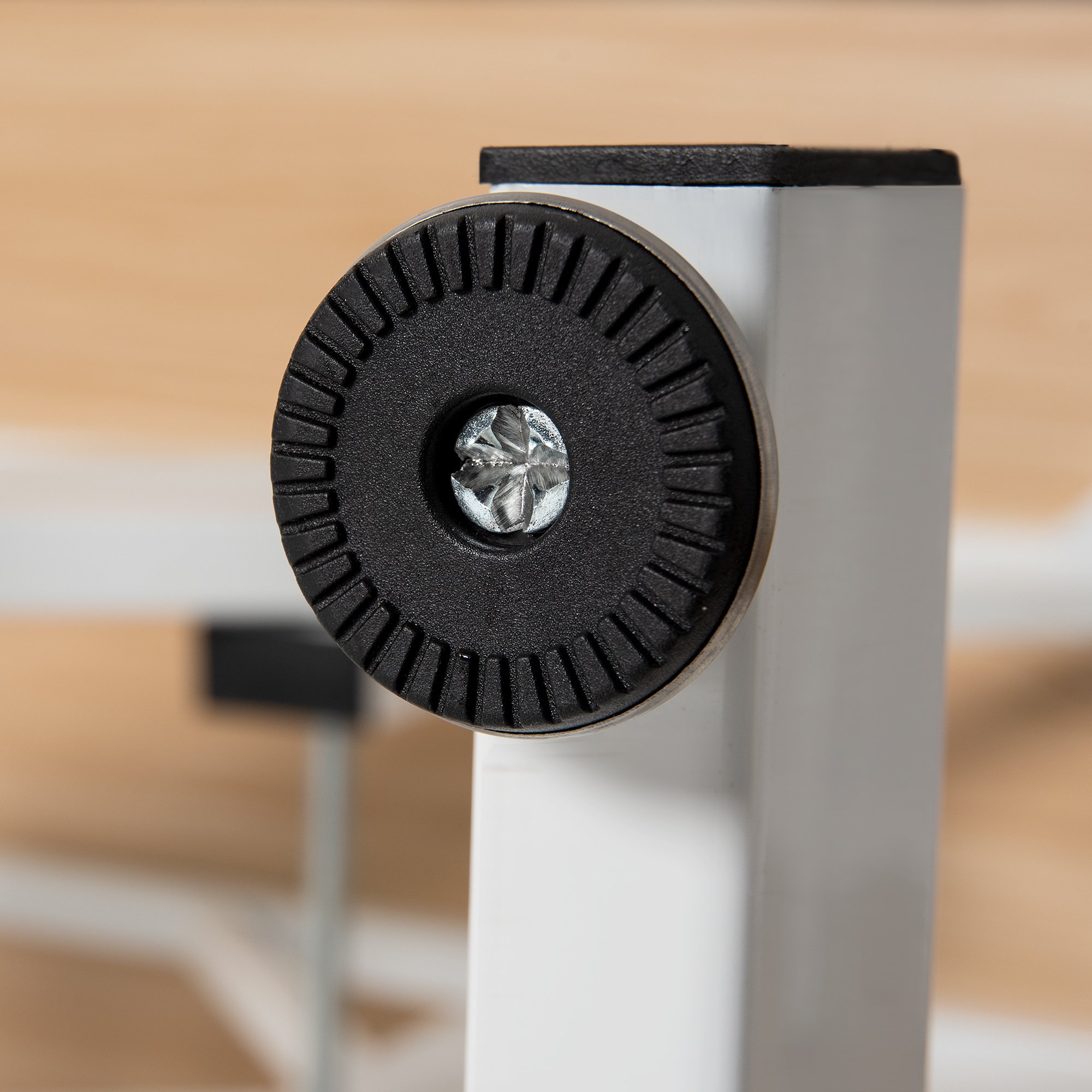 2.Adjustment screws included to install underneath the base, adjust some of them to stabilizing the grooming table. Clamp-on style adjustable stainless steel arm and grooming leash to keep pet in place.
