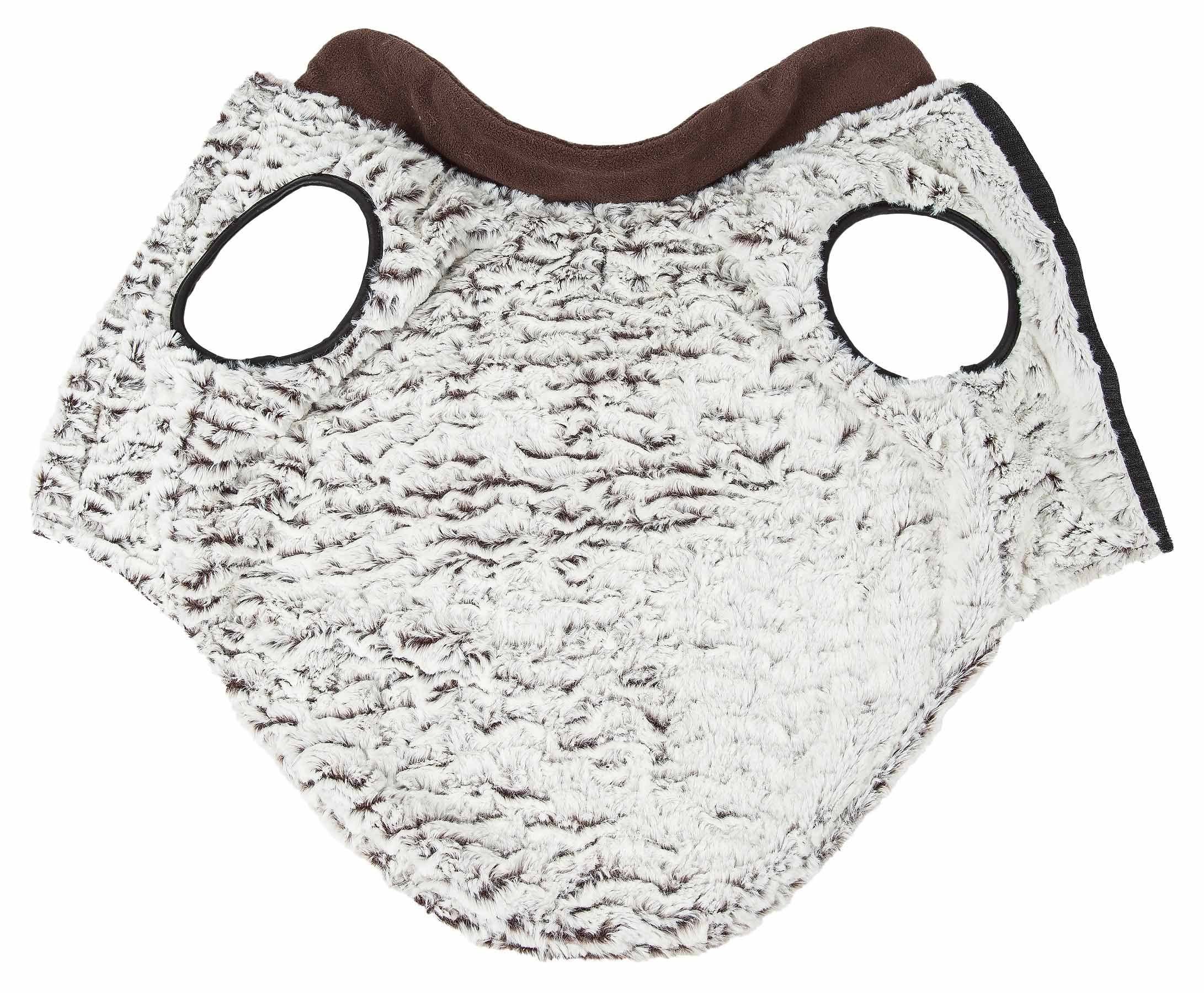 The Pet Life LUXE 'Purrlage' Designer Fur Dog Coat features a Lavishly Ruffled or Rippled Faux-Fur White and Choco Brown Pattern along the back side and reversed with Polar Fleece that gently hugs the body. This coat is further Inner-Lined with High-Grade Polyfill for added comfortability and warmth with sponged sided lining across the sleeve areas for superior craftsmanship and durability with an accented fleece collar. Features Tough-Grade Velcro Belly Enclosures for convenient on and off access and a leash slit below the Neck line. This jacket is part of our Pet Life Luxury collection. Available in Multiple Sizes.
