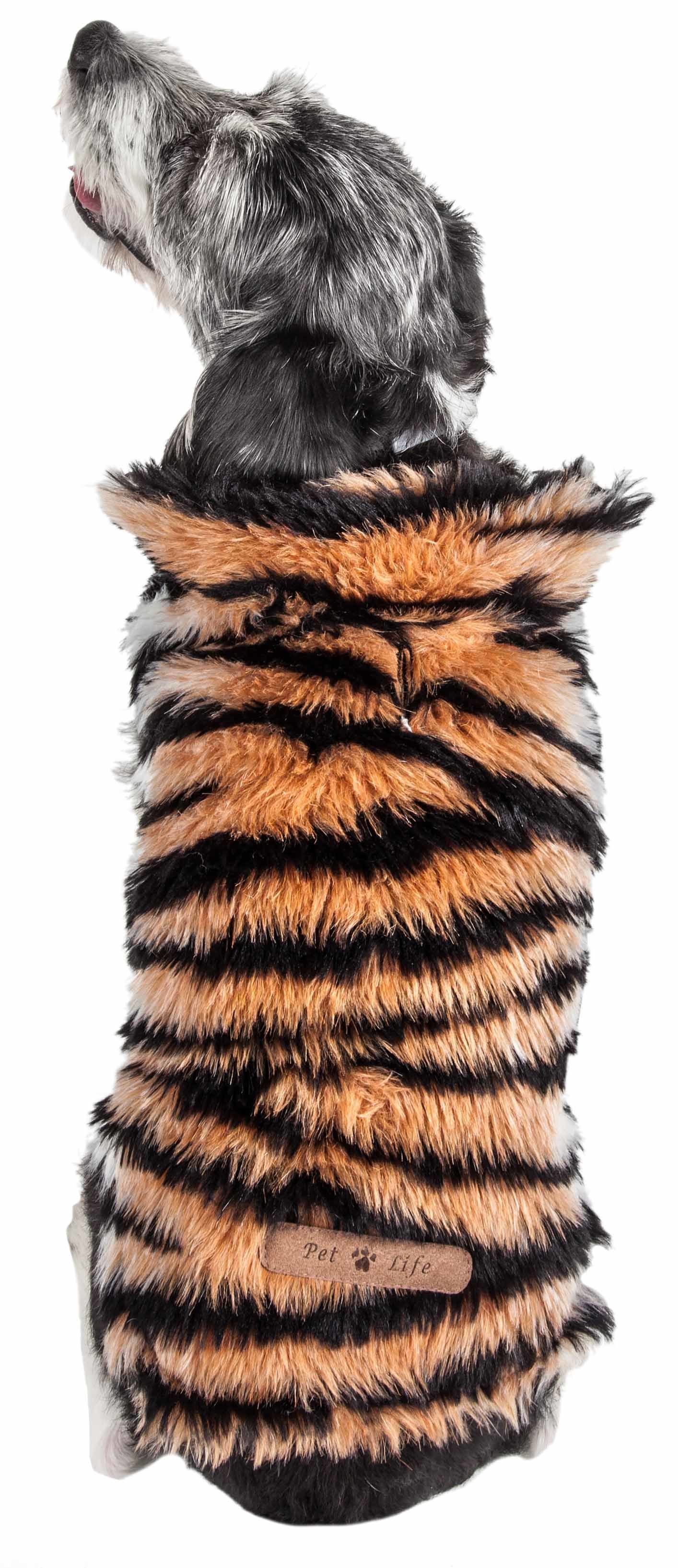 Pet Life Luxe 'Tigerbone' Glamourous Tiger Patterned Mink Fur Dog Coat Jacket