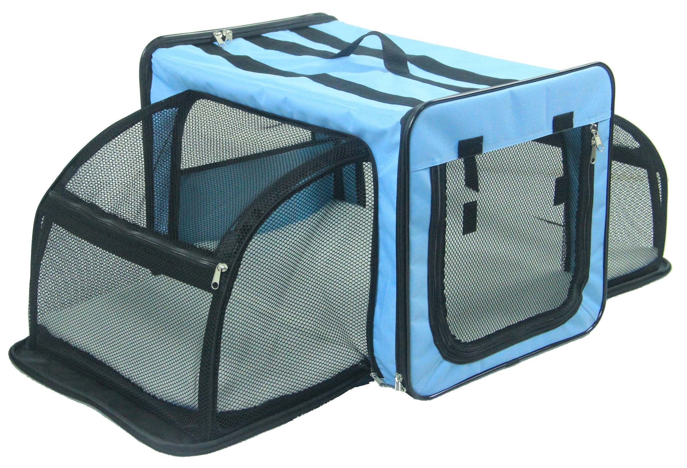 1.The Capacious crate almost triples in floor space by simply zipping opened the expandable sides