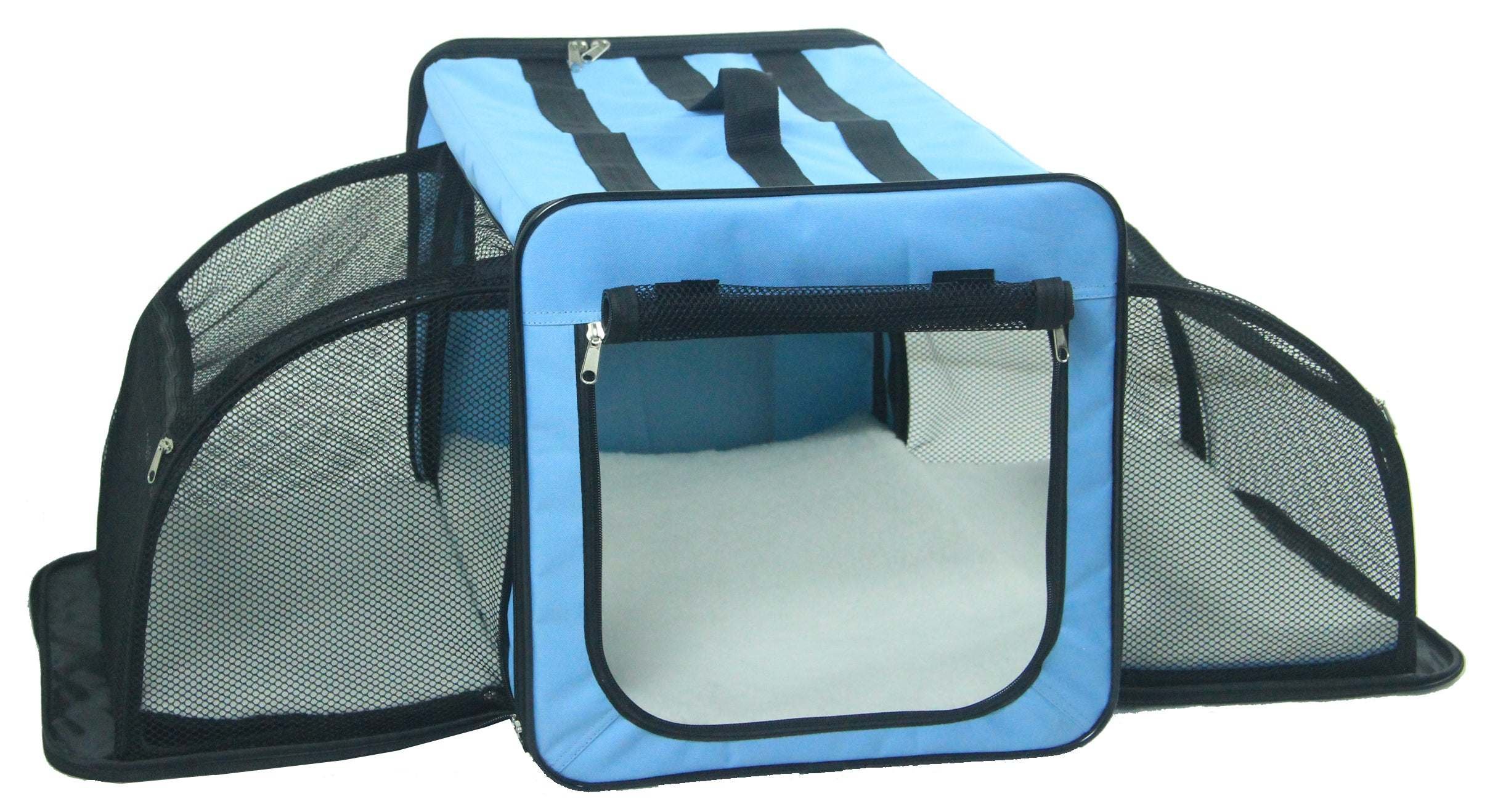 1.The Capacious crate almost triples in floor space by simply zipping opened the expandable sides