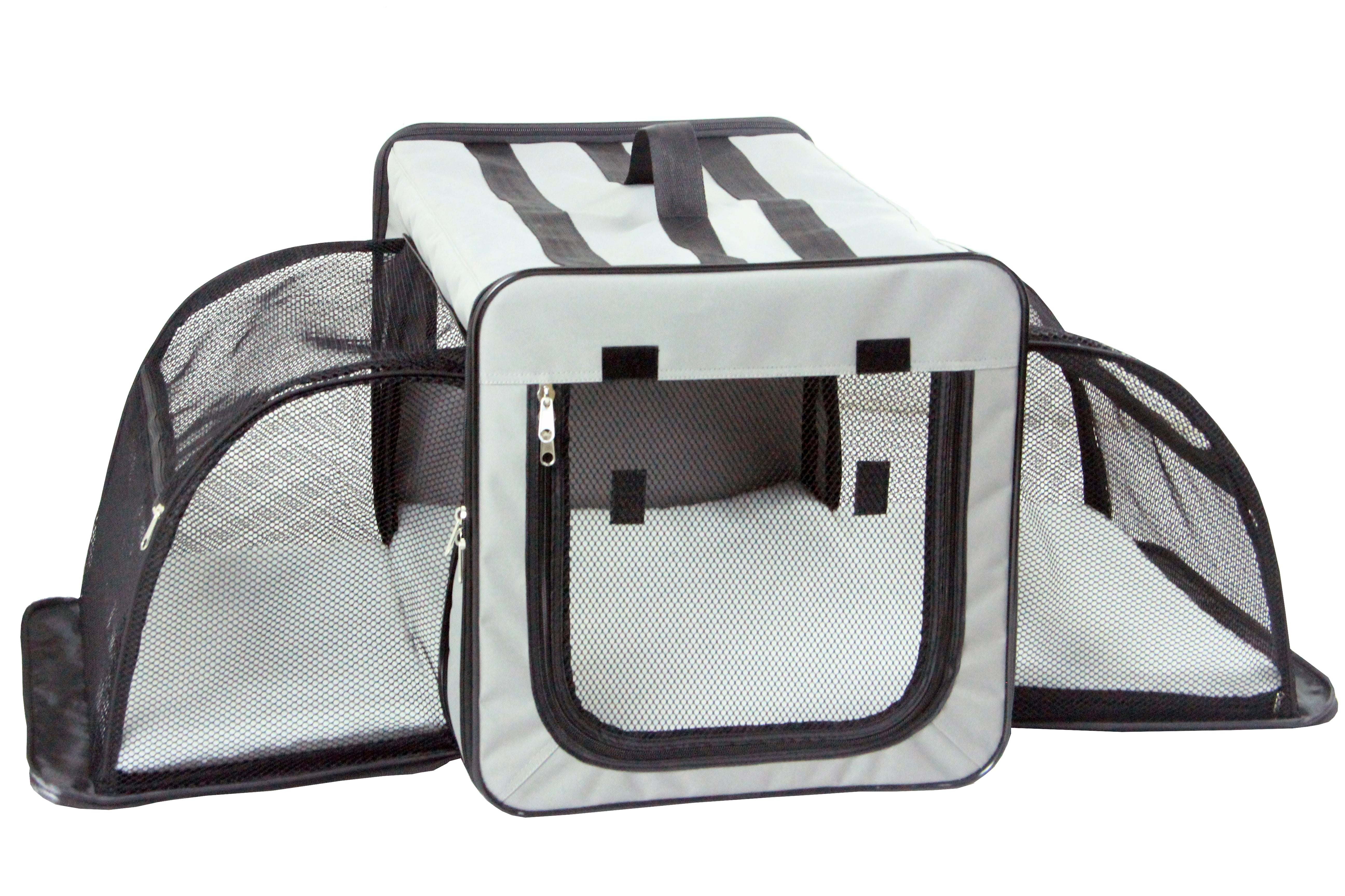1.The Capacious crate almost triples in floor space by simply zipping opened the expandable sides