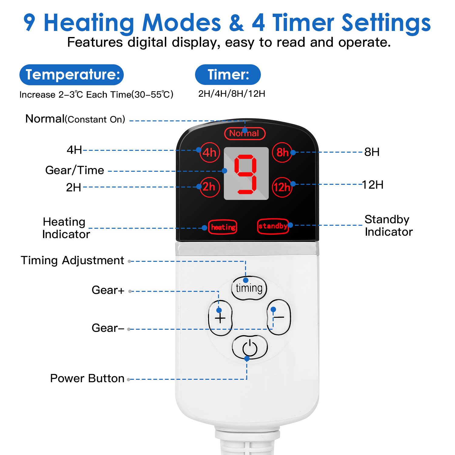 L Item Size(Thermostat/9 Gear): 45x70x1cm/17.7x27.6x0.4in