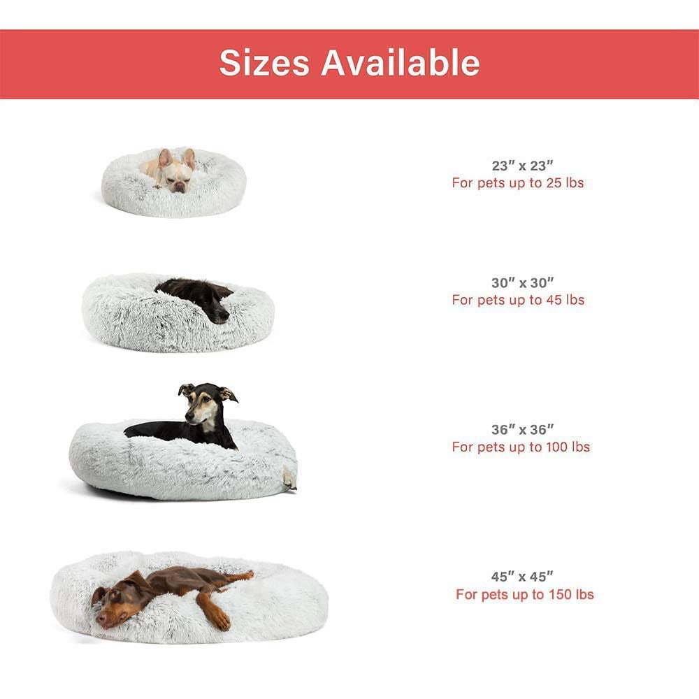 Give your pet more than just a dog bed! Best Friend's by Sheri is the original creator of the most popular dog bed that has surfaced the internet in recent years: The Calming Donut Dog Bed. This innovative cuddler shag design provides better sleep, supports joints, and offers a calming, self-warming effect. The donut cuddler is carefully crafted with durable, vegan nylon and filled with AirLoft fibers, allowing your pet to be instantly enveloped in premium, soft, luxurious comfort. The poly filling in our calming dog bed keeps its loft for up to 3Xs longer than standard pet beds, meaning it provides longer comfort, support and aesthetic appeal. Encouraging a deeper night's rest or a refreshing daytime nap, our soothing dog bed is special because it's been carefully designed to provide optimal neck, joint, and muscle support. For dogs and cats who like to burrow, the bed creates a perfect space for cuddles and top-notch snuggling. With a water and dirt-resistant bottom, our calming pet bed helps prevent messes from reaching your floors. When accidents happen, toss the shell or bed into the washing machine for easy clean up. Follow the instructions on the label to ensure proper care.