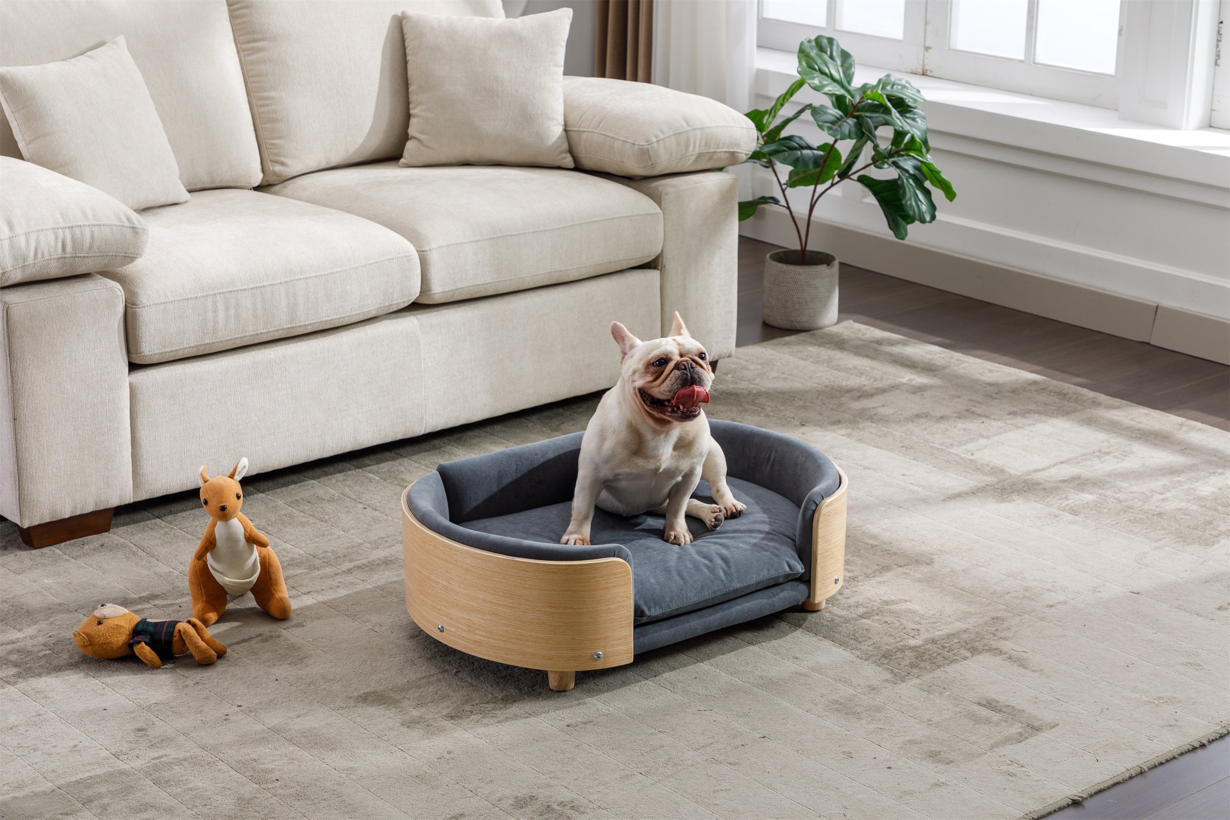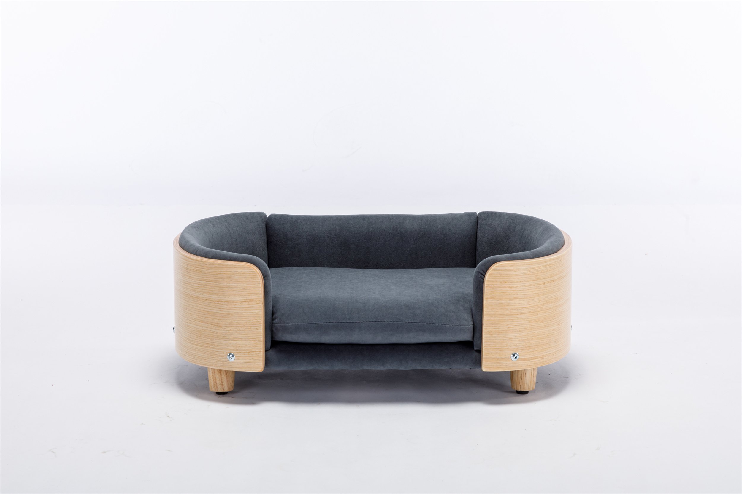 Scandinavian style Elevated Dog Bed Pet Sofa With Solid Wood legs and Bent Wood Back, Velvet Cushion,Mid Size,Dark Grey