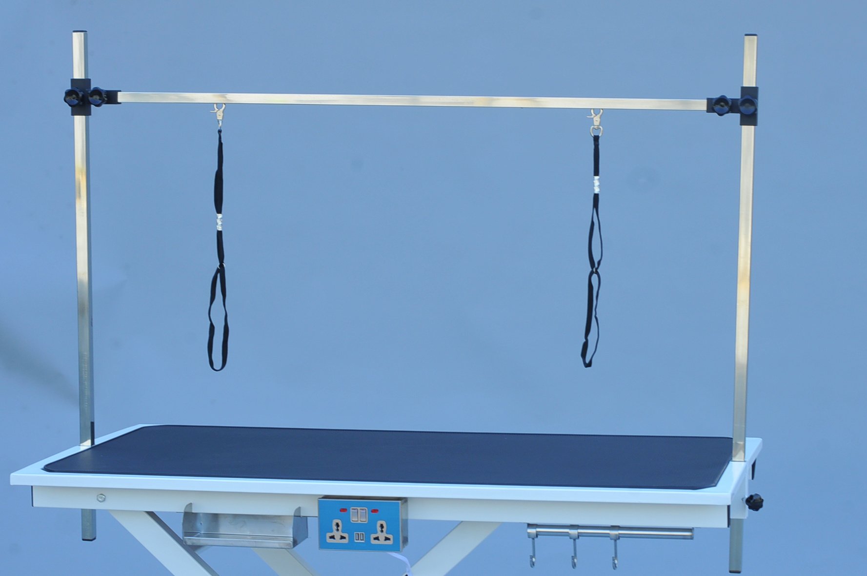Specifications:Heavy Duty Electric Grooming Table design for professional pet groomer.• Table size: 49.6"X26", height adjustable from 8" up to 36"• Electric Lift X Style to level up makes it stable and you can lifting the table when the pet stand on the table.• heavy duty design help to support 150lbs weight when lifting, and 330 lbs motionless loading.• double arm with double loops to help fixing the pet stand on the table.• the loops Constructed with high quality metal hardware to ensure sturdiness and reliability. the rubber-coated steel-core cable makes it extremely durable, attached cushion rope protecting dog's neck and abdominal area.