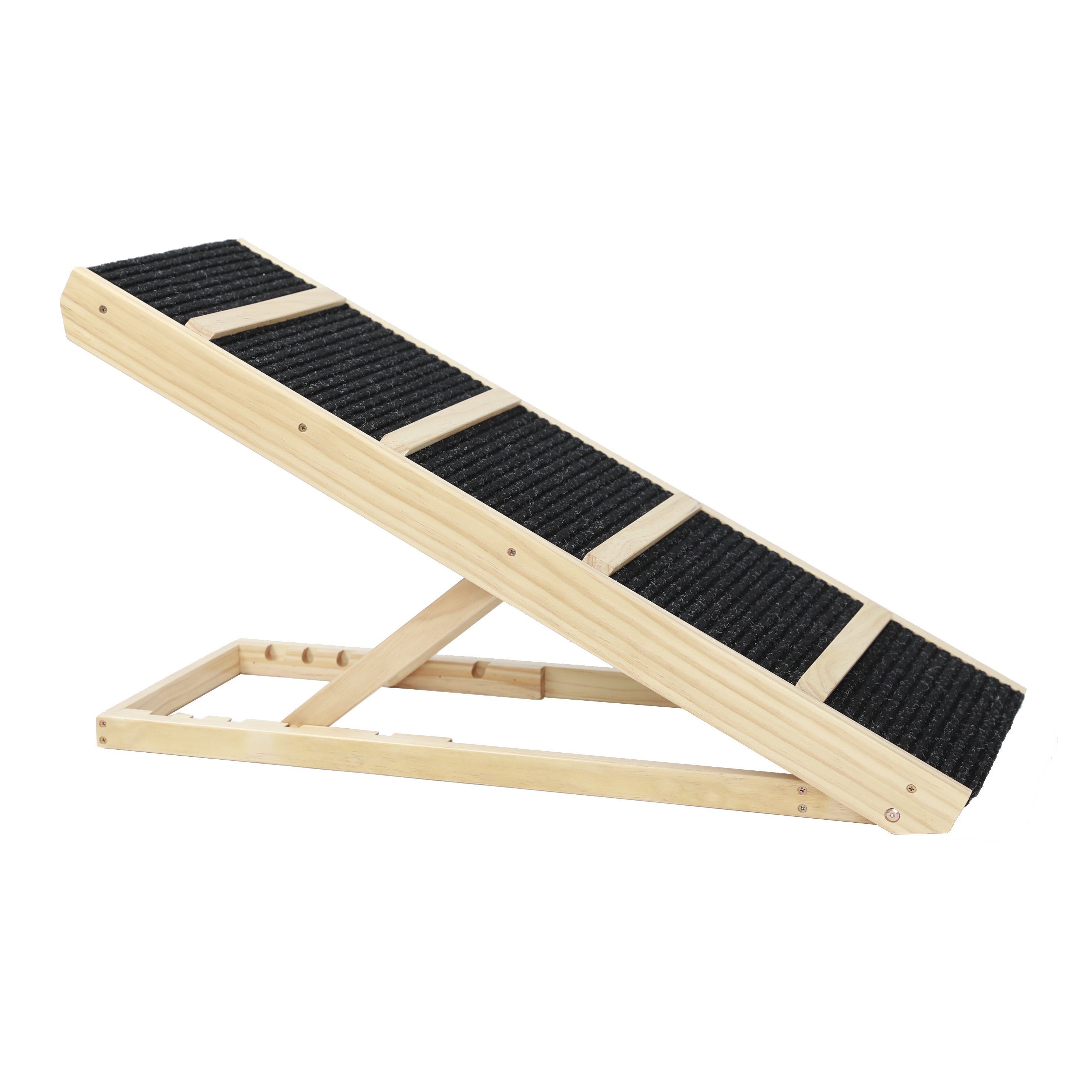 Home > Tall Adjustable Pet Ramp; Folding Portable Wooden Dog Cat Ramp; Non-Slip Paw Traction Surface Dog Step for Car; SUV; Bed; Couch; Adjustable Heig